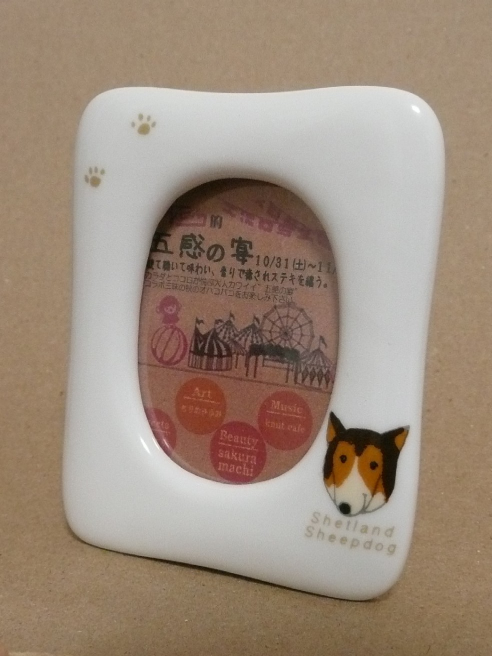 さくらと同じ犬種のシェルティが描いてあるフォトフレーム。