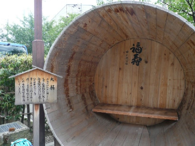 敷地内には大桶が置いてあったり、酒米“山田錦”が植わっていたり。