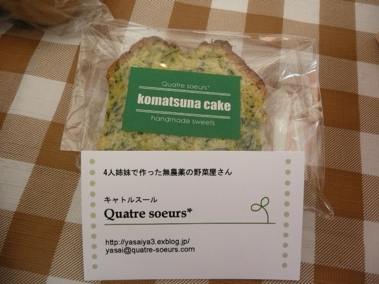 今回は、とってもきれいなグリーンの“小松菜のパウンドケーキ”を頂きました♪