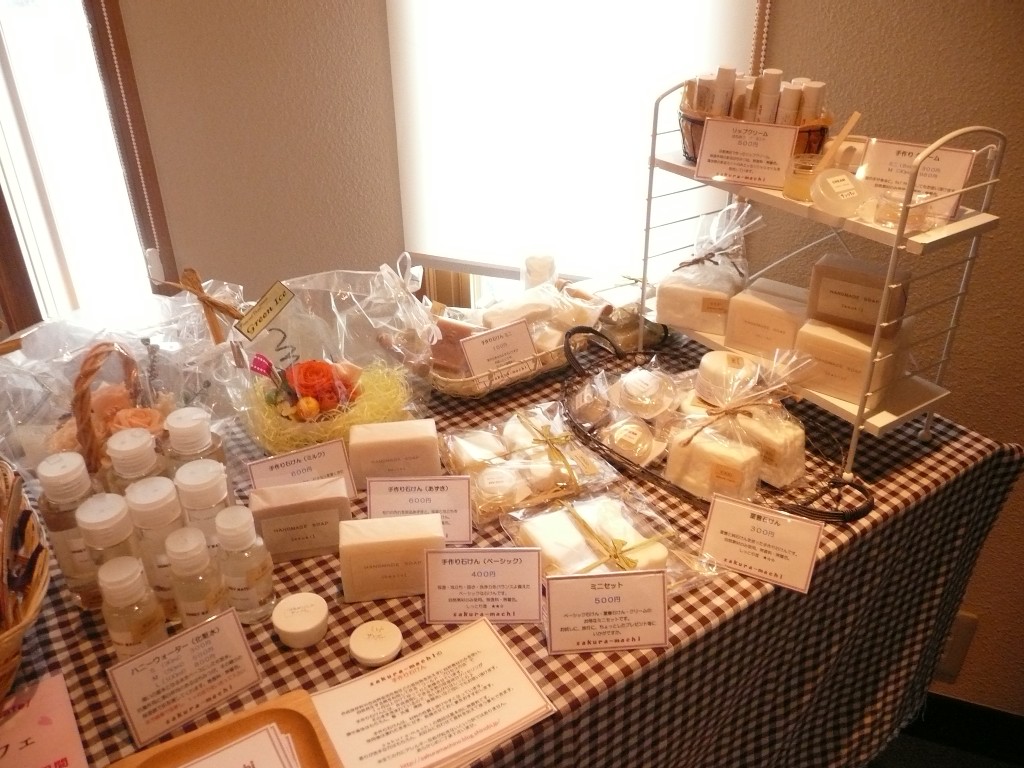 ご挨拶に行った時にsakura-machiの石けん&コスメなど商品一式持って行って