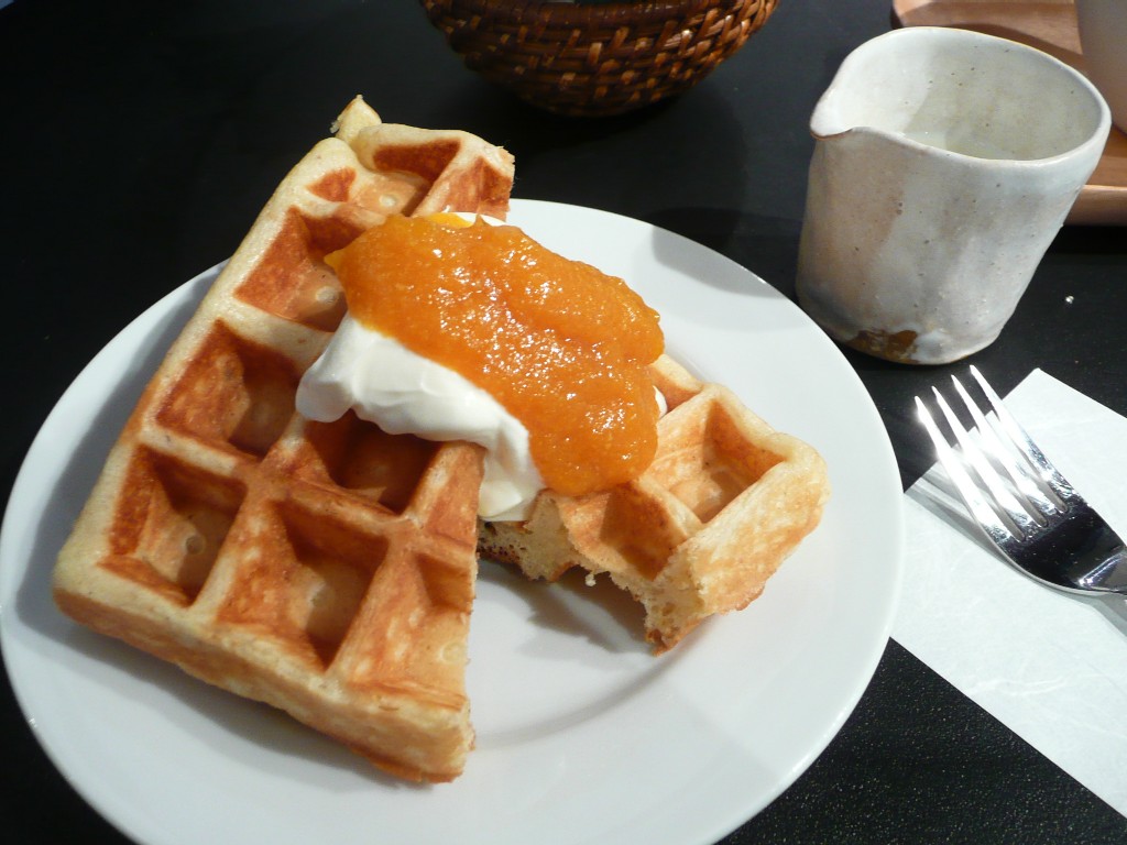 ワッフルとブルーベリーレアチーズケーキを頂きました。