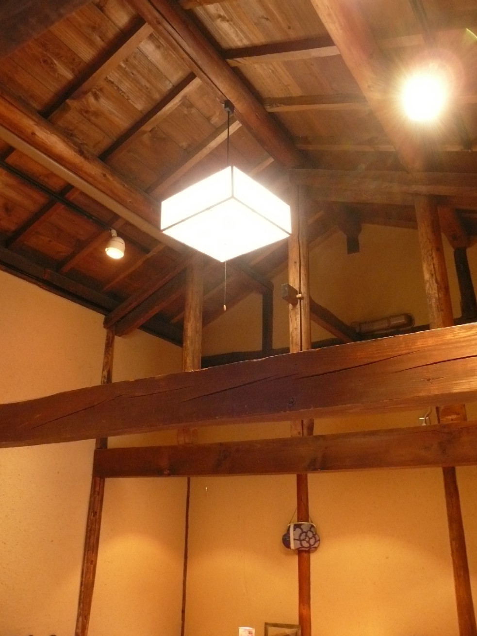 天井は高くて立派な梁が見えます →