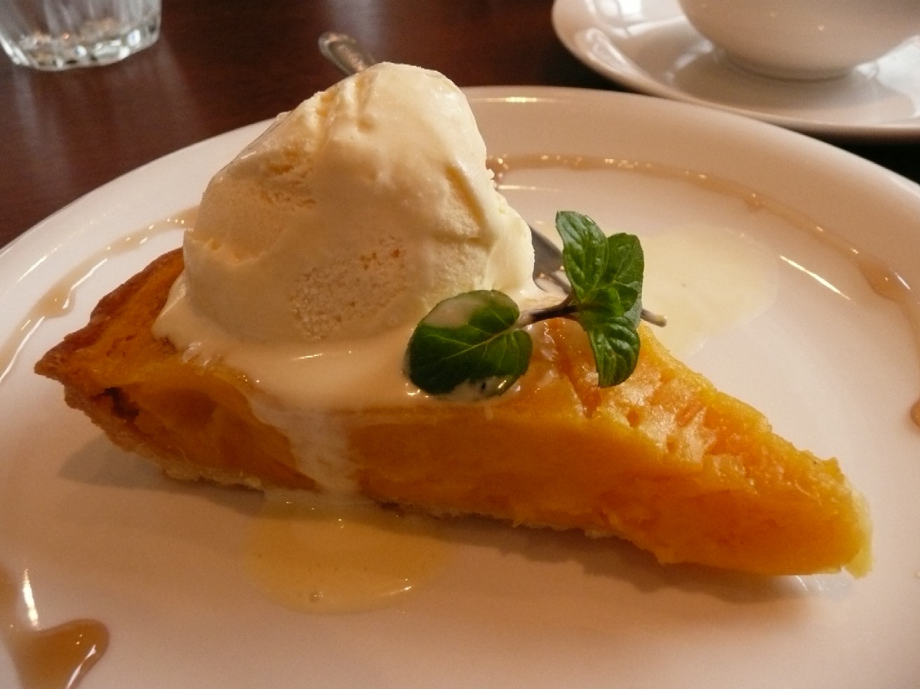 甘いおいもで、ほんのり温かいタルトにアイスがのっています。