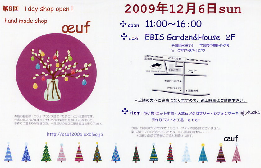 今度の日曜日、hand made shop 「oeuf (ウフ)」さんの1day shop にお世話になります。