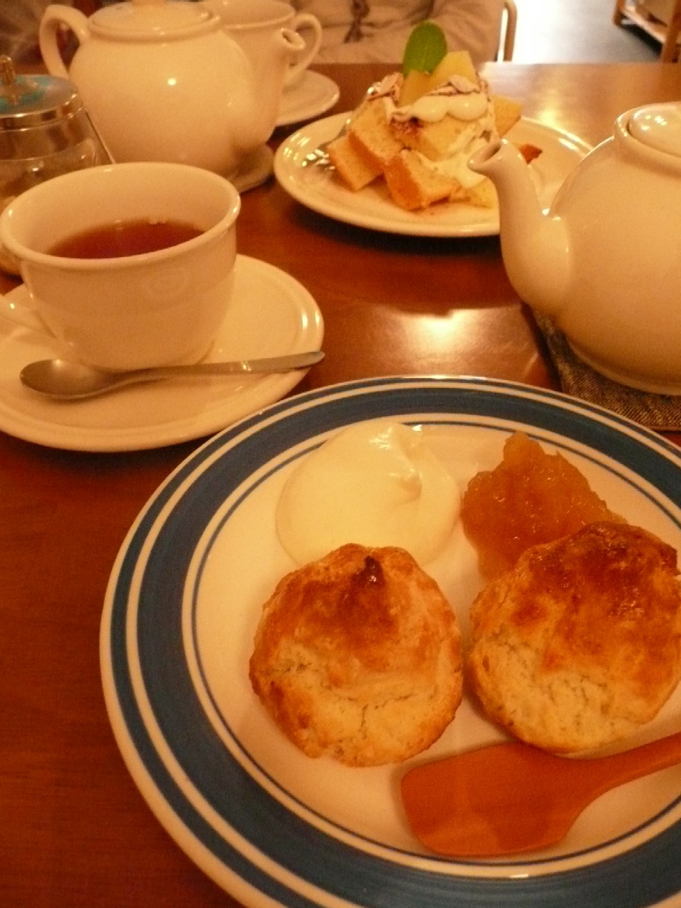 あたたかいスコーンに生クリームたっぷり♪ りんごのジャムもたっぷり♪