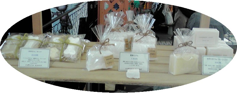 彼女の好意で、sakura-machiの石けんとコスメの一部を置いて頂いています。