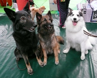 しつけ教室やアジリティ教室があったり、いろんな会社が出展していたり。