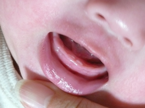 6、7ヶ月ぐらいから生えると聞いていた下の前歯2本。